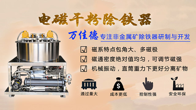 佛山市万佳德科技有限公司是一家集科研开发、工程设计、生产、调试服务于一体的国内规模较大、产品种类较全的电磁设备制造公司之一,公司先后获得了多项发明及实用新型专利,同时公司已通过ISO9001认证,主营产品有:各种规格的高梯度电磁浆料机、粉体磁选机、永磁磁选机、电磁立环机及磁力板、除铁箱、磁棒等。广泛应用于矿山、陶瓷、石英、高岭土、钾钠长石、建材、玻璃、环保、橡胶...